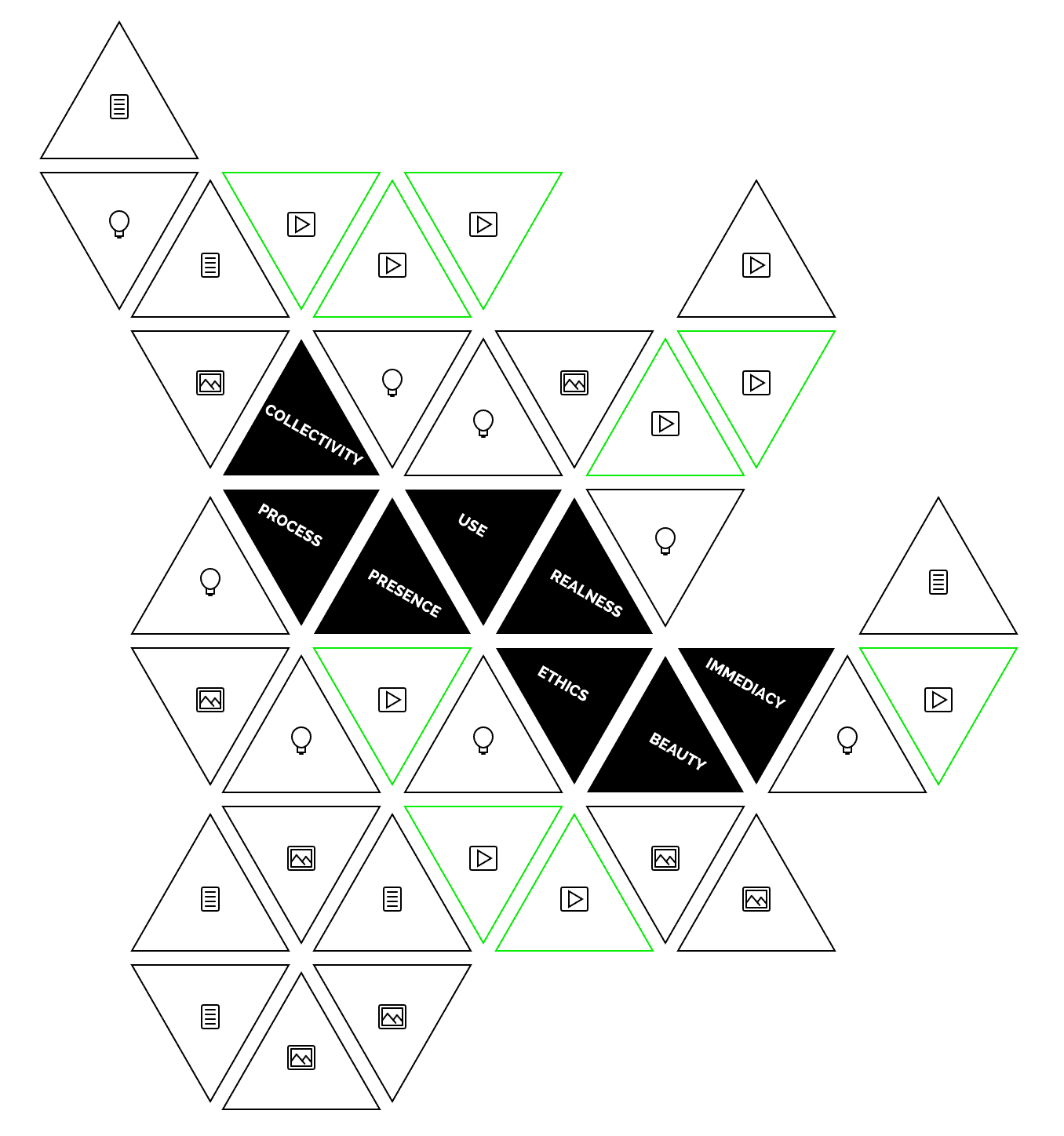 Each article contains or discusses a video, a photograph, or a text. The icons show what the medium of the article is.